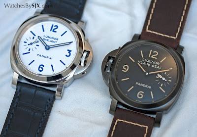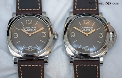Das nächste Paar von Uhren passen ihren unverwechselbaren Look von Vintage Panerai Uhren mit verfärbten Zifferblättern, die Spitznamen "tropisch" von Sammlern nach dem Fading Effekt von Sonnenlicht. Im Falle von Vintage Panerai Zifferblättern wurde das Fading wahrscheinlich durch das leuchtende Radium für die Nachtsichtbarkeit verursacht.