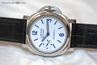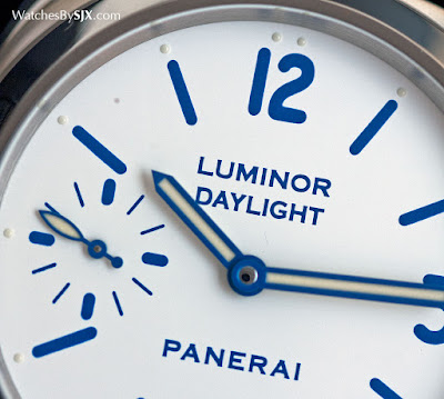 Gebildet Uhren aus einem Paar von Luminor 44 mm - das ist der zweite Slytech zweiteilige Set nach dem letztjährigen PAM785 - man eine herkömmlichen Armbanduhr am linken Handgelenk getragen zu werden, und die andere für Rechtshänder gemeint, oder destro in Paneristi Sprachgebrauch. Die faszinierende des Paares ist die Luminor Daylight 8 Tage Acciaio , basierend auf einem Prototyp für Stallone, um im Tunnel Katastrophe Film Daylight tragen . Es ist ungewöhnlich, weil das Zifferblatt weiß ist mit tiefblauen Markierungen und Händen , eine Kombination, die auf keinem anderen Panerai gefunden wird.